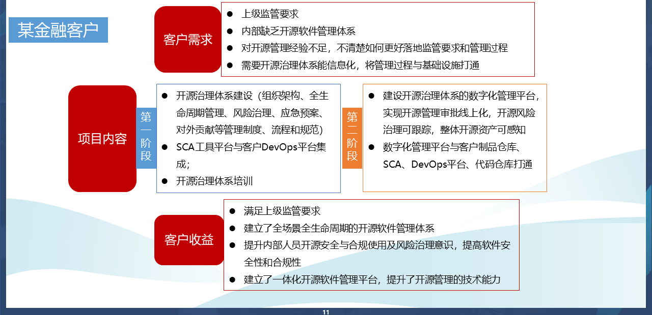 公司不仅专注于金融和互联网行业,还涉足智能制造领域,展现了其跨行业整合能力。这种能力使其能够将不同领域的先进经验融入开源治理体系咨询服务中,为客户提供更具创新性和实用性的解决方案。